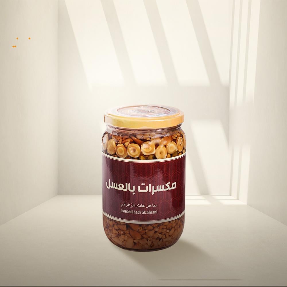 مكسرات بالعسل طعمه لا يقاوم ويشمل مجموعة من أجود أنواع المكسرات مثل ( الفستق والجوز واللوز والكاجو )، التي يحبها الجميع، وطعمها لذيذ ويعادل مذاق العسل الحلو لمن لا يفضلون السكريات.